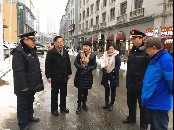 1月27日下午,区委副书记、区委政法委书记陈红山到花楼水塔街检查融雪防冻工作。