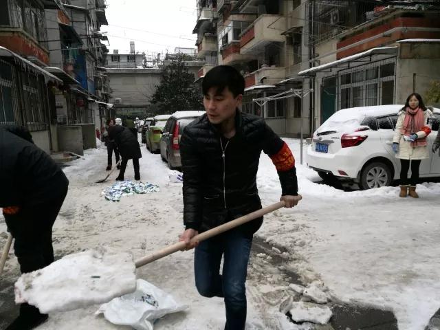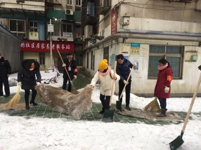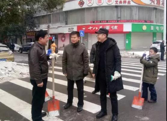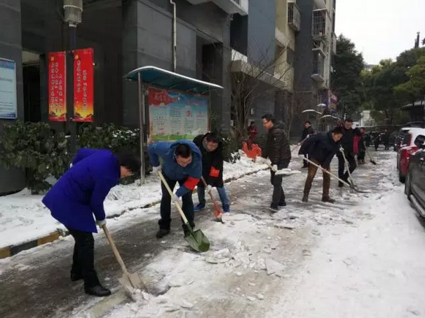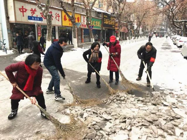 1月28日下午,区委统战部全体机关干部到汉兴街水仙里社区扫雪除冰,确保居民出行安全。