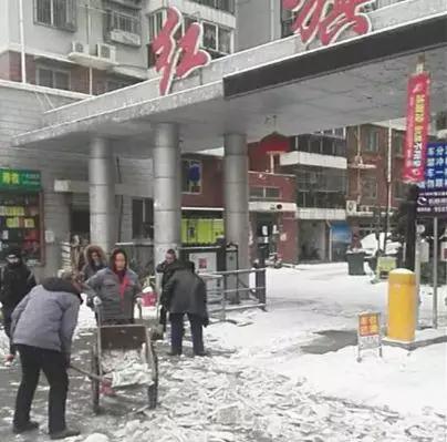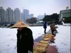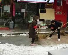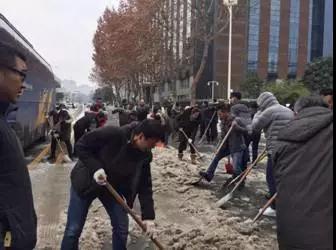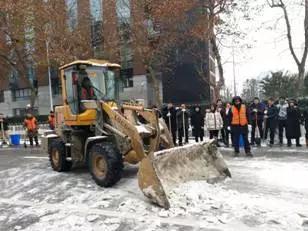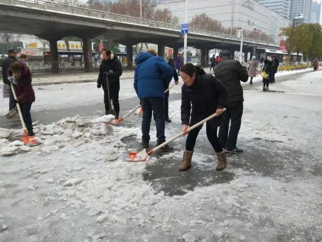 组织教职工、志愿者扫雪除冰、铺设草垫麻袋,保障人民群众出行安全。