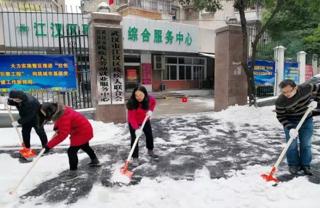 目前,江汉辖区共有120余家各级文明单位、3500余人参与扫雪除冰行动。