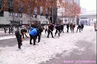 1月25日至27日,武汉遭遇严重低温冰雪天气,给人民群众生产生活带来极大不便。面对冰雪,区委、区政府高度重视,统筹调度;各部门、各单位迅速行动、主动应对;各文明单位积极参与、齐力除冰,消除了冰雪天气带来的不利影响,保障了人民群众生产生活稳定有序。