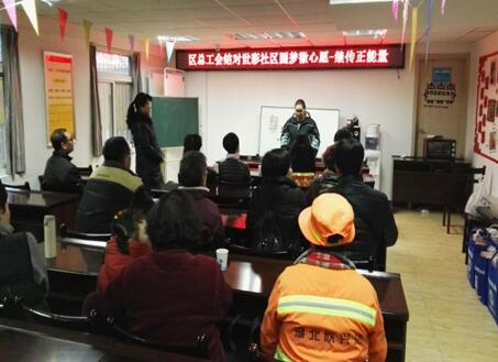 元月28日,江汉区总工会党组书记、常务副主席方华辉率工会干部4人到民权街世彩社区开展社区帮扶工作。对社区顾金枝、胡联明、张小莲等困难居民开展慰问。 结对会上,方华辉主席与现就读于清芬路小学一年级的单亲女孩郑梦婉结为帮扶对子,成为她的义务妈妈。 区总工会领导还与街道办事处领导一起,开展了送一台取暖器、送一床电热毯等系列慰问活动,并送去900元慰问金。