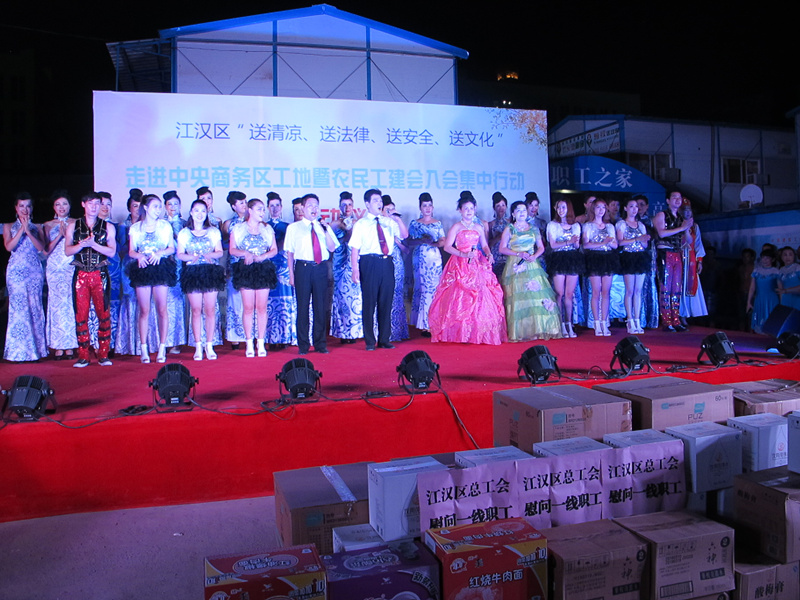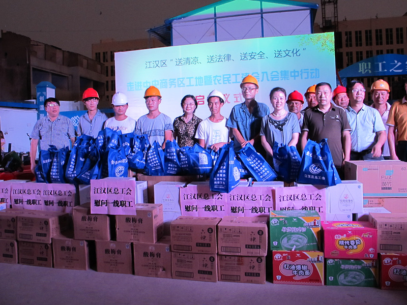 8月18日晚7时,江汉区“送清凉、送法律、送安全、送文化”走进中央商务区工地暨农民工建会入会集中行动启动仪式,在中央商务区中城悦城项目部工地圆满举行。