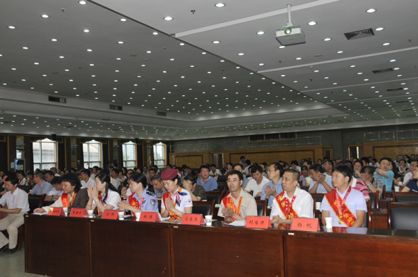 7月9日上午,由市总工会组织的“以劳动托举中国梦”武汉劳模先进事迹报告会在江汉区委五楼大会议室举行。会前,区委书记李强、区长张俊勇接见报告团全体成员并合影。区委中心学习组全体成员,街工委、机关各委办局及大中型企事业单位中心组成员、工会主席,区直机关全体干部近300人参加了报告会。会议由区委常委、区总工会主席张劲主持。