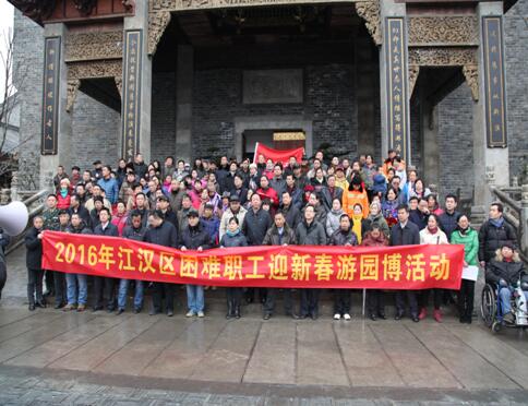 元月28日上午,江汉区困难职工结对帮扶活动在市园博园举行。为了让更多困难职工家庭感受到大江大湖大武汉大气之美、灵秀之美,区总工会改变过去22年来坚持请特困职工家庭开展团拜会、吃团年饭的习俗,为210户市级建档特困职工家庭近450人配备了百元食品,送大家游园博园。一方面请大家欣赏家门口的园博会,另一方面也让特困职工身在武汉有自豪感,同时也把“绿色联接你我、园林融入生活“的理念送到困难职工家庭。