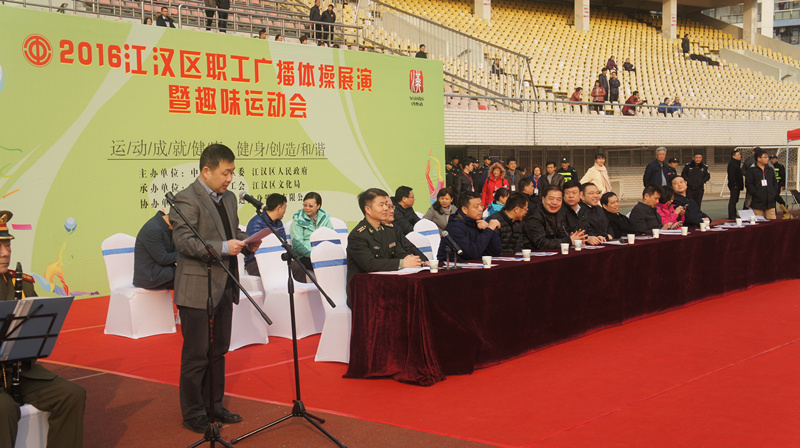 12月10日上午,由中共江汉区委、江汉区人民政府主办,江汉区总工会、江汉区文化局承办的全区2016年职工广播体操展演暨趣味运动会活动,在汉口文化体育中心隆重举办。来自全区机关事业、企业单位的57支队伍,2200余职工参加了本次活动。
