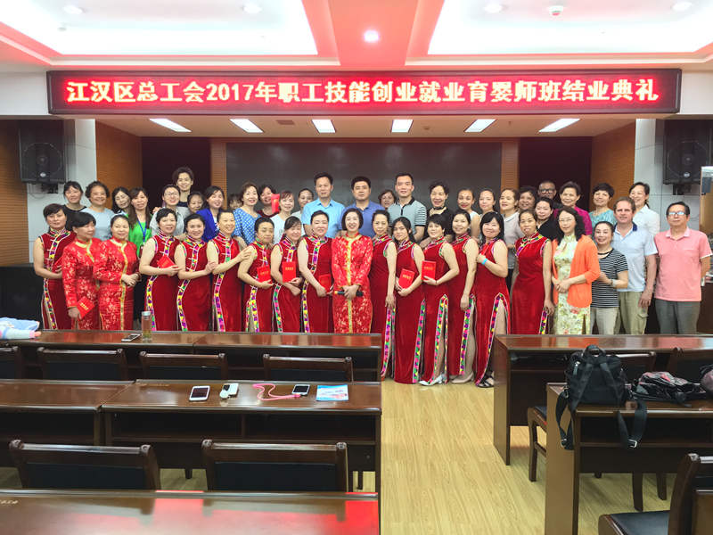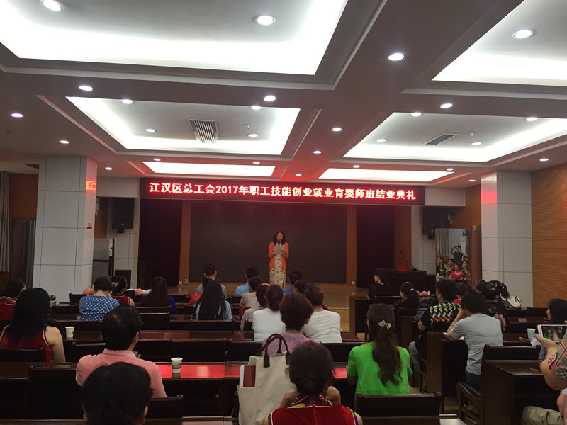 6月12日下午,在江汉区职工大楼会议厅举行了由江汉区总工会和湖北家政职工学校共同举办的育婴师公益培训班结业典礼。参加结业典礼的领导有江汉区总工会副主席王昌发、家政学校相关领导和老师,本期育婴师班全体学员。