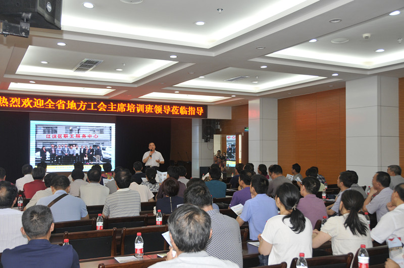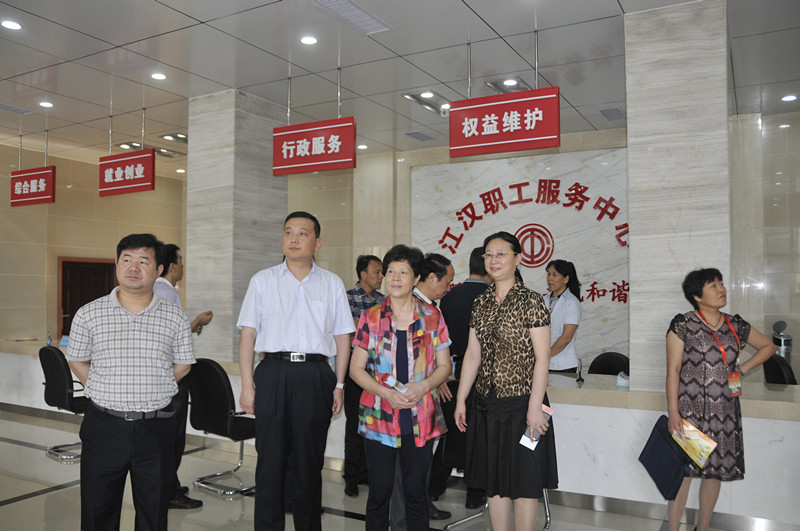 7月8日下午,来自全省地方工会主席培训班的120名学员,在省总工会副主席冀群风、组织部部长郑明华带领下,来到江汉区职工服务中心参观考察。市总工会副主席胡朝晖、基层组织建设部部长姚玲等陪同。