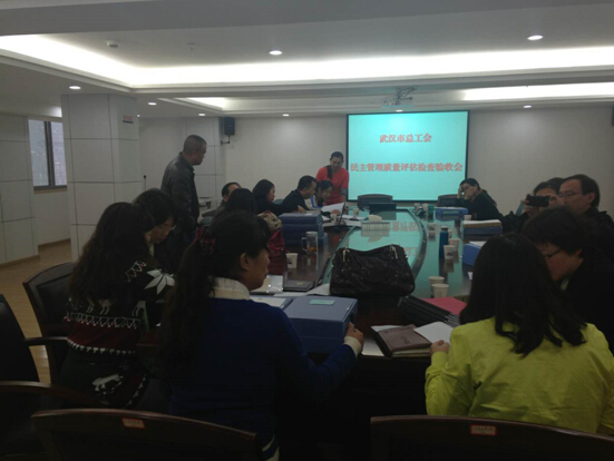 10月30日下午,武汉市总工会民主管理质量评估检查验收会在江汉区总工会进行。武汉市总工会民主管理部万运民部长一行4人对本年度我区教育系统申报民主管理星级单位的7所中小学、幼儿园进行了评估检查验收。