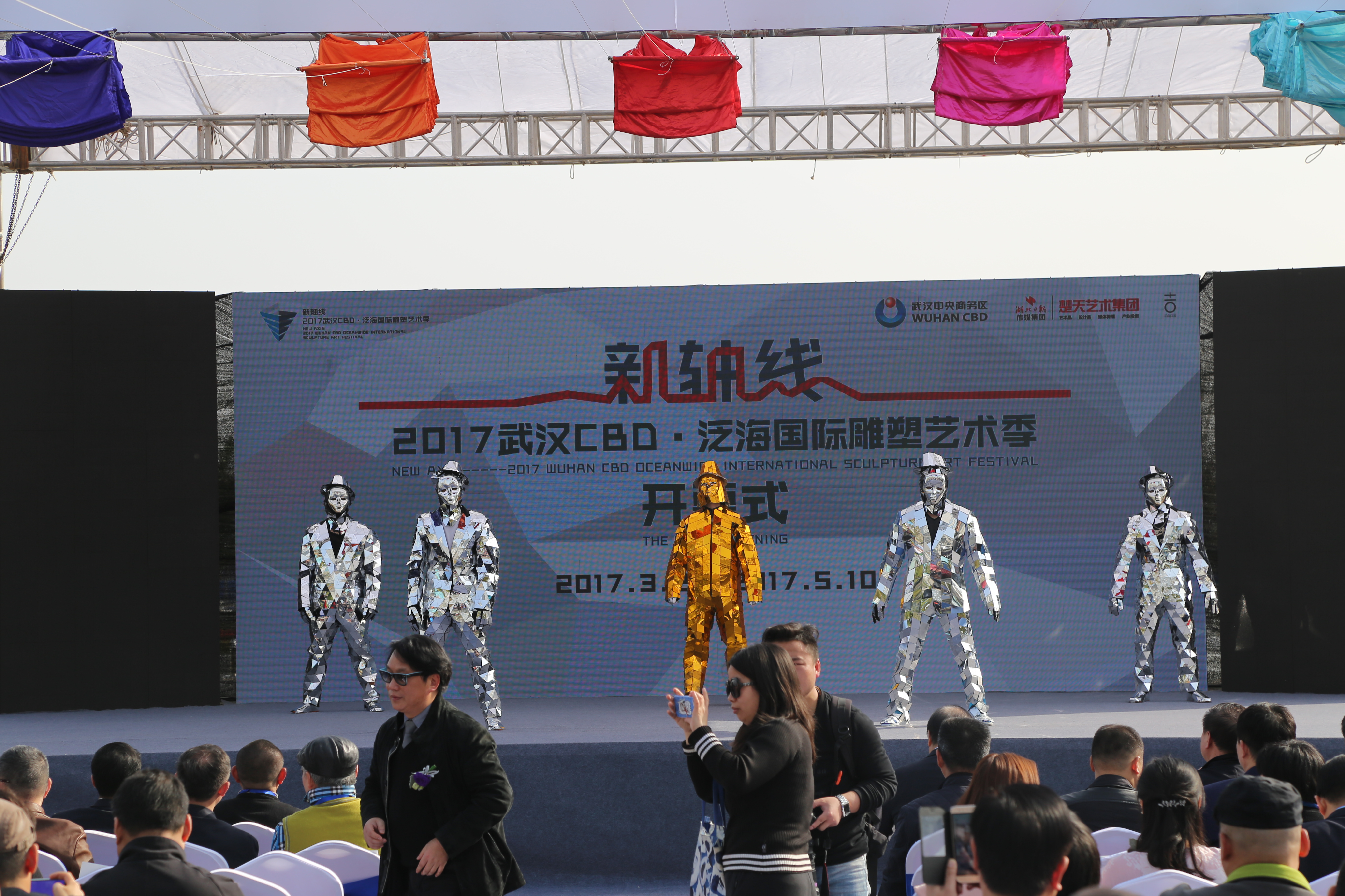 昨日,80位国内外艺术家创作的大型雕塑作品在武汉中央商务区(CBD)景观轴广场集中展出,为武汉CBD凭添一份“艺术范儿”。