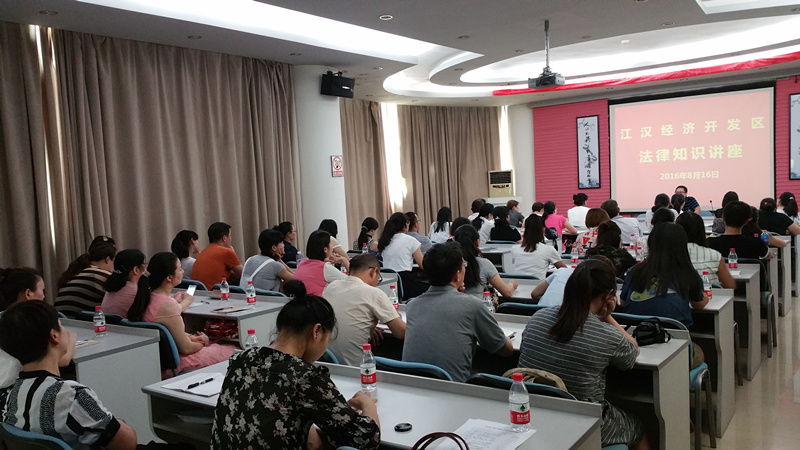 8月16日上午,江汉区总工会法律小讲堂活动在江汉经济开发区汉口创业中心2号楼7楼会议室开展。活动的主讲老师为“武汉市劳权法援服务团”成员胡锦鹏律师,江汉经济开发区内40余位企业负责人、工会主席、人事主管们参加了学习。 讲座中,胡锦鹏着重从企业与职工的劳动争议、劳动合同的履行,以及和谐劳动关系的建立等3个企业、职工关切度非常高的法律知识点进行了讲述。活动过程中,胡律师通过真实、生动的案例和以通俗易懂的语言,引导职工从专业视角分析、理解,学习现场互动氛围深厚,职工们纷纷表示受益匪浅。