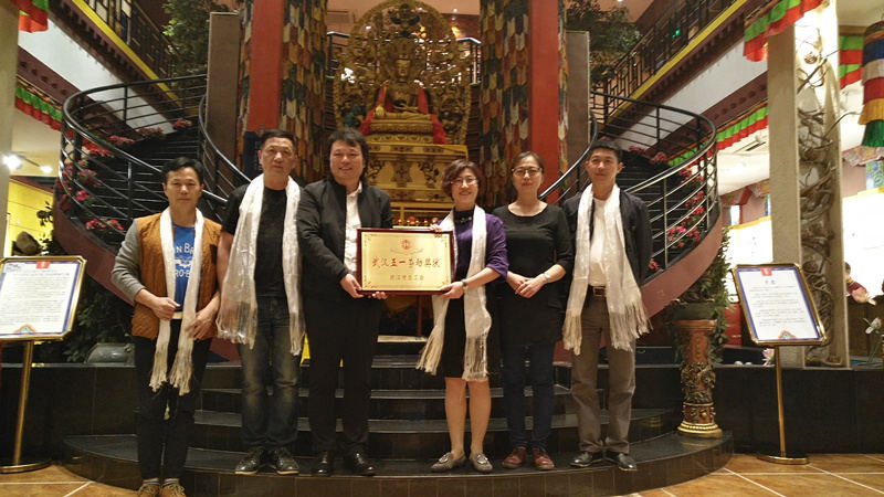 5月3日,市、区两级工会领导走进武汉唐古拉汉藏文化交流有限公司,为企业送去工会人的关怀与肯定。 市总保障部部长吴志武、调研员任进、孙杰等冒雨来到武汉唐古拉汉藏文化交流有限公司,为企业送去“湖北省工人先锋号”荣誉奖牌。 区总工会副主席马宁、经济保障部部长何汉斌为企业送去获得的“武汉市五一劳动奖状”荣誉奖牌和证书。 公司董事长斯朗丹增曲培感谢市、区工会对基层企业的关怀,为市区工会领导献上藏民感恩的哈达。