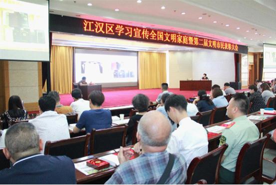 2017年6月2日上午,江汉区学习宣传全国文明家庭暨文明市民表彰活动在区委大礼堂举行。区委常委、宣传部部长、统战部部长胡娟,区委宣传部副部长、文明办主任杨振威出席会议。区妇联主席苏瑾主持会议。