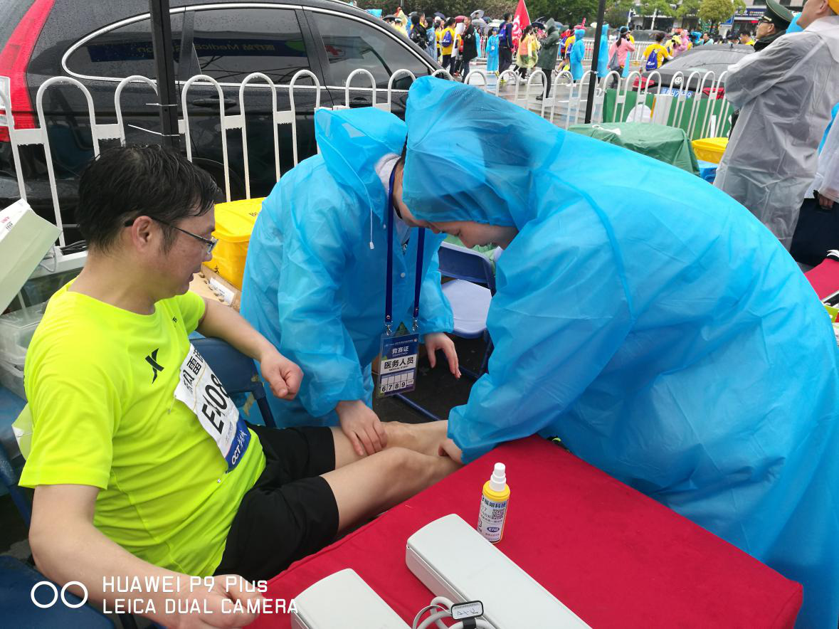 武汉举办第二届马拉松比赛,红十字会医院急诊室巾帼文明岗在健康跑终点执行医疗保障任务,并圆满完成医疗保障任务。17名医护人员顶着大雨为马拉松选手们进行医疗保障,共处置伤员68名,受到马拉松选手们的好评。