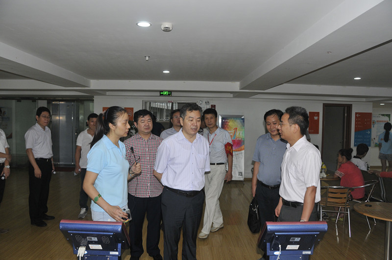 7月15日,全总研究室主任安建华等一行,在省总工会副主席谭必元、省总研究室主任付家斌,市总工会副主席胡朝晖、市总研究室主任张明的陪同下,来江汉区职工服务中心参观和检查指导工作。