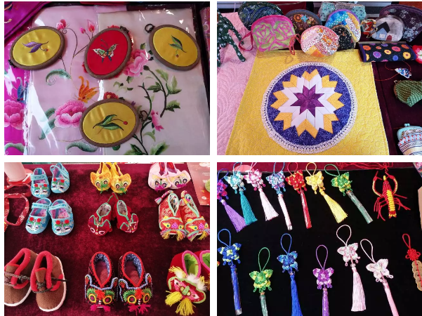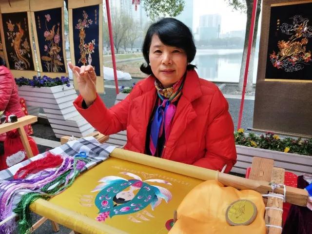 此次民俗会展,以“非遗”为主题,汇聚了江汉区的重要非遗项目:如汉绣、手工拼布、景泰蓝、天然植物染料染色、玉镶金、汉派石雕等。还有汉服、虎头鞋、中国结艺、糖画等众多手工艺品展出。现场居民不仅能零距离接触非遗,还可以与众多大师一起感受民俗文化的魅力。
