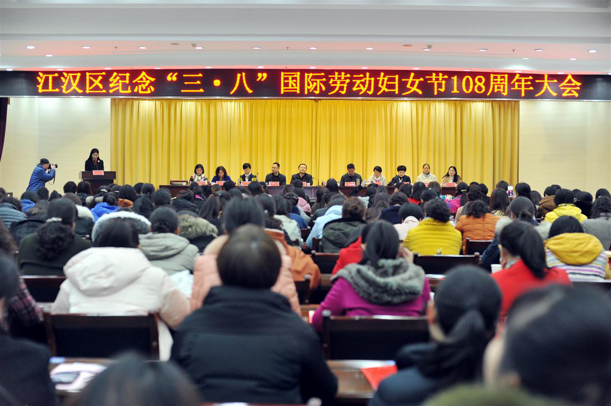 3月8日,以“巾帼心向党·建功新时代”为主题的江汉区纪念“三八”国际劳动妇女节108周年大会江汉区委五楼大礼堂举行。市妇联主席徐丽、区委书记张俊勇、区长李湛、区委常委张显军、区人大常委会副主任洪涟、区政协副主席韩继红出席会议;区直各部门、各单位分管妇女工作的领导以及来自江汉区各战线妇女精英、妇干代表300余人欢聚一堂,共同庆祝自己的节日。