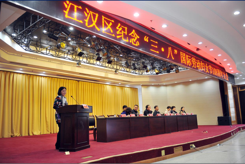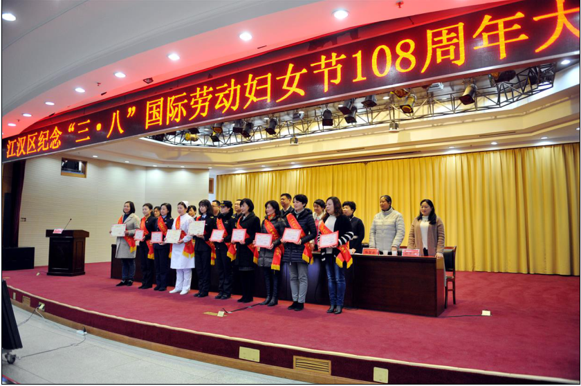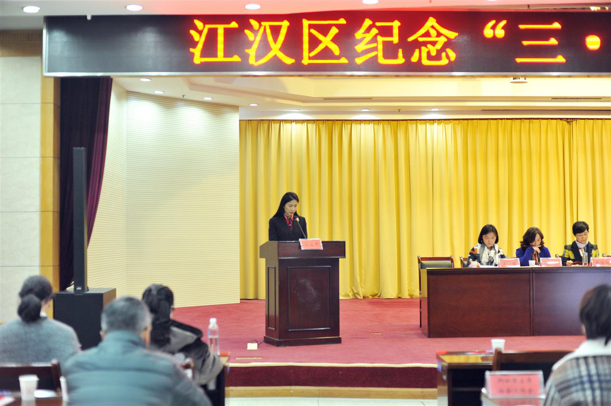 区委常委张显军宣读了三八表扬通报,通报表扬了江汉区“三八”红旗手、“三八”红旗集体、优秀妇女工作者、最美家庭等一批优秀典型。