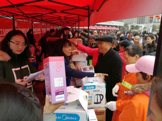 在市总工会关爱困难女职工“三八嘉年华”活动上,江汉区40名困难女职工领到了节日礼物。