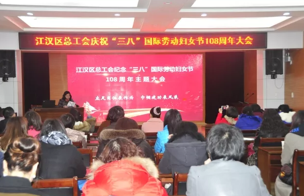 3月9日,江汉区总工会召开纪念“三八”国际劳动妇女节108周年主题大会,对在开展女职工提升素质建功立业中表现突出和在基层工会组织引导、服务女职工和维护女职工合法权益方面作出突出贡献的先进集体和个人进行了表彰。
