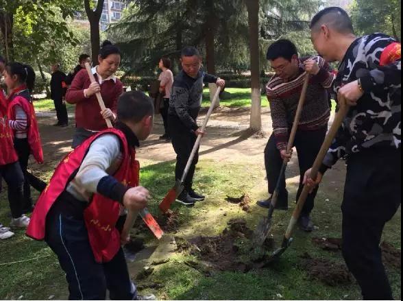 3月12日下午,汉兴街新华家园社区组织社区工作者和大兴第一实验小学小志愿者们,开展了义务植树活动。现场有的扶苗,有的培土,经过一下午的奋战,100多棵植物被整齐地栽移到小区内,在三月的阳光中奏响绿色旋律。