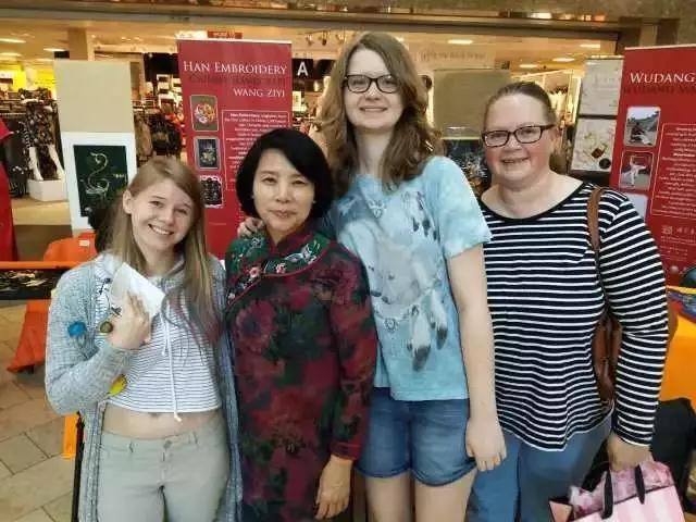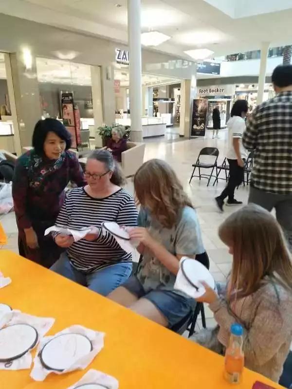 在加利福尼亚州蒂梅丘拉购物中心的展会上,汉绣更是受到了当地市民的热捧,大家纷纷走上前听王子怡老师讲解汉绣的知识,并现场尝试参与体验简单的汉绣。在展会上,大家都被这中国来自的精美技艺所吸引,纷纷赞不绝口!