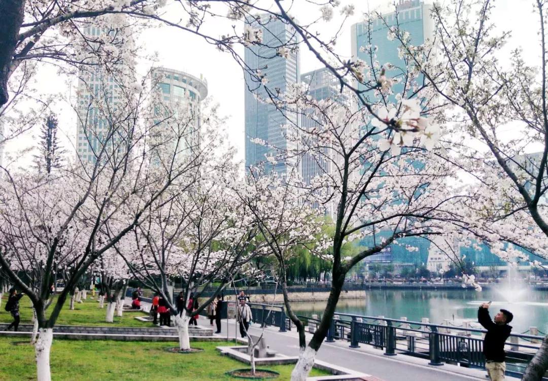 3月是樱花开放的季节,西北湖绿化广场的樱花也随之开放,一大朵一大朵粉色的樱花将西北湖畔点缀成了一片粉色的海洋。
