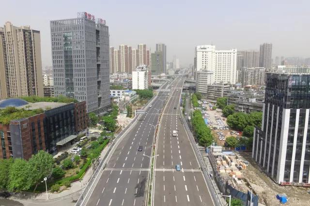 4月16日,汉江大道江汉区常青路段二环线至三环线之间的主线高架桥顺利通车,标志着连接三环线、二环线、汉口火车站和中央商务区的南北大通道打通。
