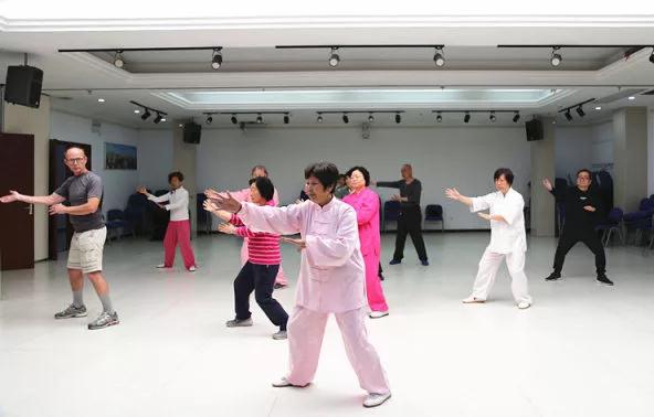 刘金凤老师教授的杨式太极拳,已列为武汉非物质文化遗产,其定步十三式更是清宫内秘传王爷、公主的招数,不仅健身效果极佳,还有防身的作用,老外们学得非常上心,听得津津有味,赞赏中国太极拳太有魅力了!