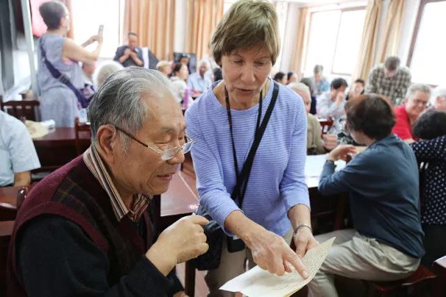 英语课堂上,78岁的杜开炎用英语认识了73岁的劳拉,杜开炎向劳拉请教了英语学习的方法,两位老人相谈甚欢,更有缘的是她俩分别是历史老师和校长,在退休前都是从事教育工作,彼此结下了深厚的友谊,英语课堂沟通交流更为方便,中美文化在互动中擦出了友谊的火花......