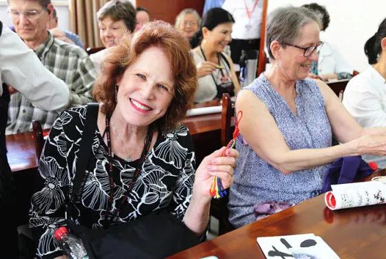 4月19日,美国老年大学学者之路旅行团一行22人来到江汉区老年大学。校长冯忠民热情的接待了美国朋友,带领他们观看了《红楼梦讲析》、京剧、时装模特表演、声乐、太极拳、钢琴、传统武术、书画、手工编织等十余个教学活动。中美老年朋友们一起交流学习,在互动中增进了友谊。