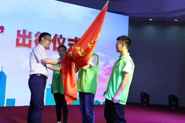团区委书记任恒丽和华中科技大学团委书记林桢栋共同开启了“新青年下乡”的启动仪式。区委常委张显军为下乡大学生授旗,“新青年下乡”正式出征。