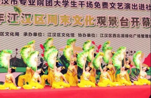周末文化观景台是江汉区大型群众文化品牌活动,首创于2005年,2009年被文化部授予“全国特色广场文化活动”荣誉称号, 13年间开展活动400余场,被观众亲切地称为江汉的户外民众乐园。