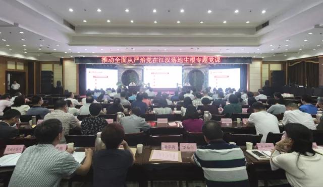 情景教育党课结束后,区委书记张俊勇讲授了题为《推动全面从严治党在江汉落地生根》的专题党课。