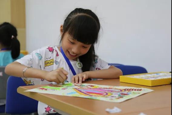 比赛一开始,窗外就下起了滂沱大雨,却丝毫没有影响孩子们比赛的热情。刚拿到画纸,有的小朋友就迫不及待的开始画格子、勾线条了,有的小朋友则在闭目冥想,构思心中的美丽画卷。