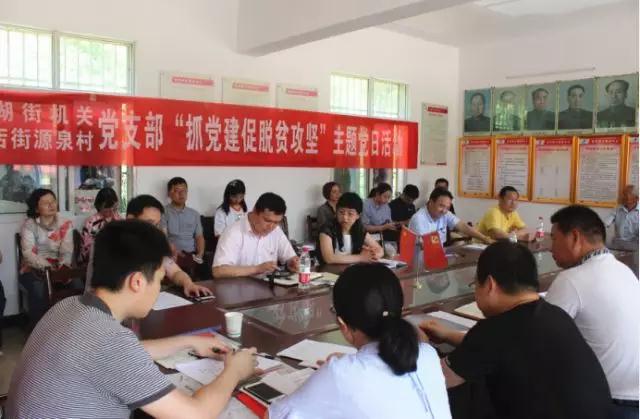 北湖街机关党支部与对口结对扶贫村黄陂区蔡店街源泉村联合开展主题党日活动,学习讲话精神,共谋扶贫攻坚大计。
