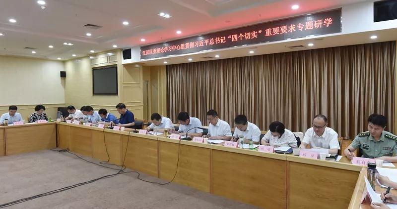 6月14日下午,江汉区委理论学习中心组以贯彻习近平总书记“四个切实”重要要求为主题开展专题研学。区委理论学习中心组全体成员、各街道和区属部门单位主要负责同志参加学习。