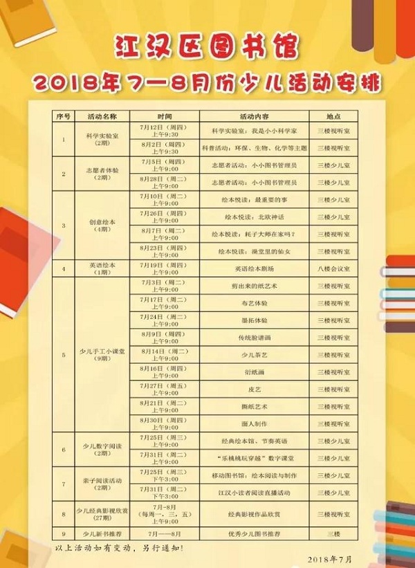 不如来江汉区图书馆“放纵”一夏吧!