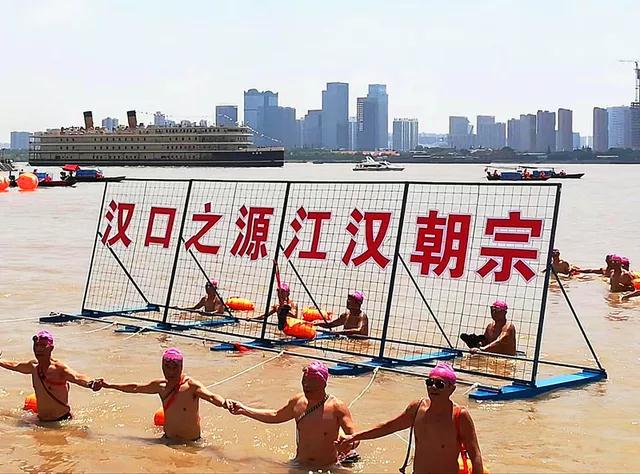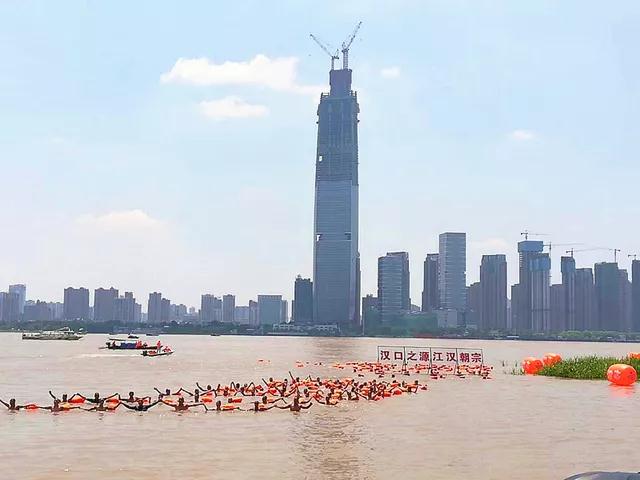 其中,江汉区“汉口之源 江汉朝宗”横渡方队共有200名游泳队员参与渡江,全体队员精诚团结、众志成城、不畏艰险,奋力游完6000米全程,横渡长江取得圆满成功。