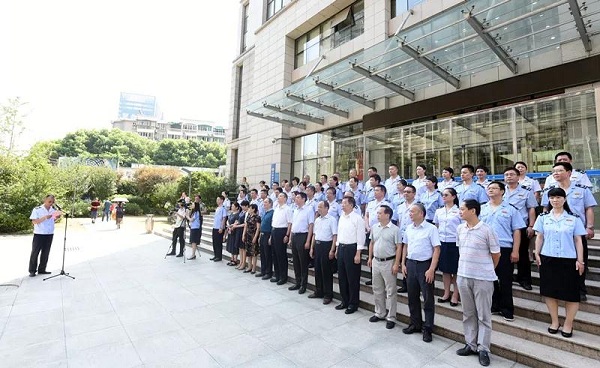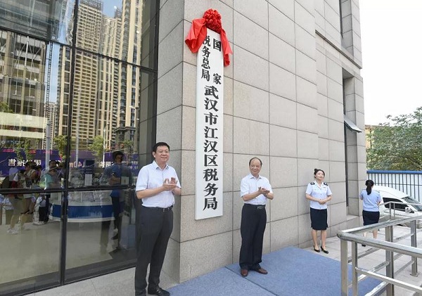 7月20日上午10点,伴随着庄严的国歌声,五星红旗在新成立的国家税务总局武汉市江汉区税务局上空飘扬。