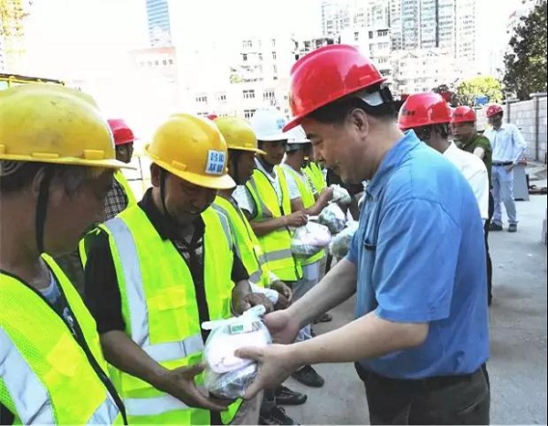 7月18日上午,区政协主席严国运到中海青年路项目工地,慰问高温下坚守岗位、辛勤劳动的一线职工,为他们送去了毛巾、绿豆、白糖、风油精等防暑降温物资。