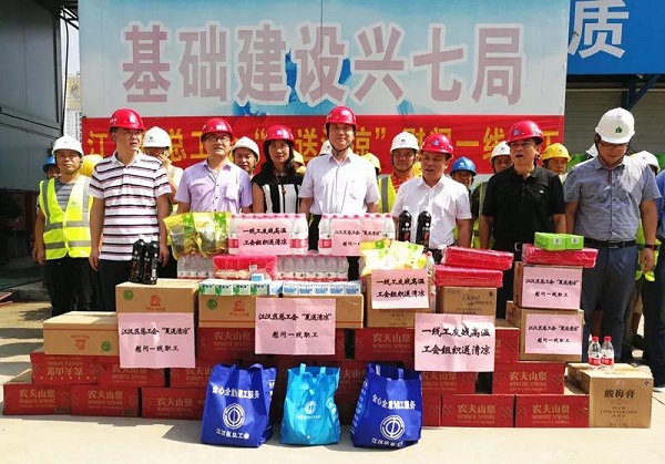 7月24日上午,区委常委、常务副区长、区委办主任、区总工会主席张劲带队到民族街绿地汉口一号建设项目施工现场,看望和慰问了奋战在一线的建筑工人,为他们送去了矿泉水、十滴水、人丹、酸梅膏等防暑降温用品,并叮嘱大家在高温作业时要增强防护意识,项目部要加强监督管理,落实好防暑降温措施,确保安全生产。