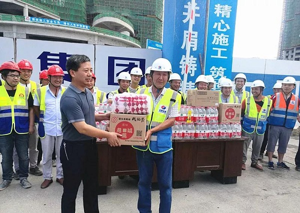 7月23日下午,区委常委、区纪委书记、区监委主任罗辉权带队,慰问冒着高温酷暑奋战在一线的建筑施工人员,向正在建设中的南国中心二期项目施工作业人员送上矿泉水、酸梅膏、毛巾等防暑降温物品,要求施工单位加强施工安全管理,确保安全度夏。