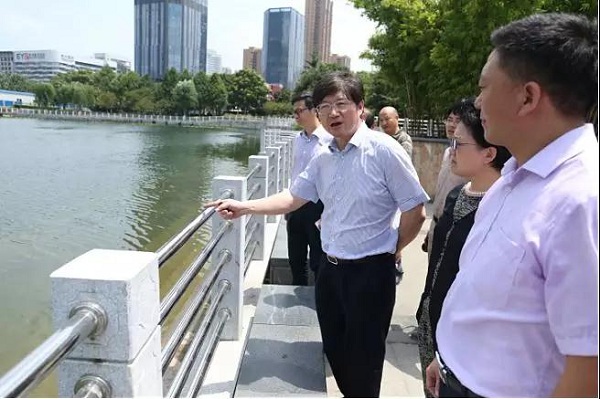 干小明一行听取了江汉区关于河湖管护、河湖长制及公园建设等工作情况的汇报,详细巡查了小南湖、机器荡子及后襄河生态环境情况。在后襄河旁,面对清澈的湖水、美丽的岸坡,干小明感叹在武汉40年没见过这样清澈的湖水。