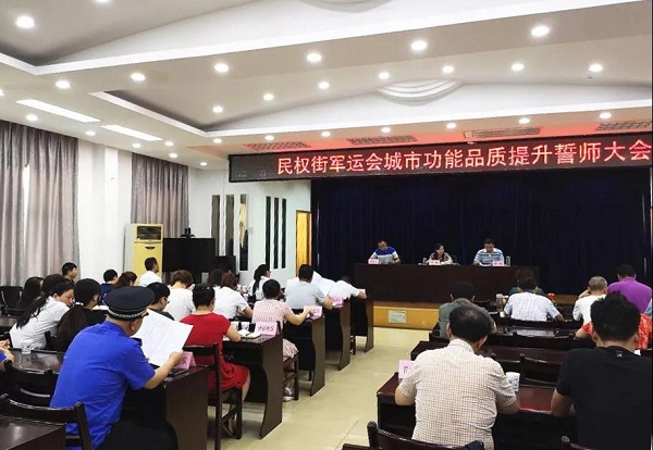 7月24日下午,民权街召开军运会城区功能品质提升誓师大会,进一步明确了工作目标任务,要求各部门之间切实形成合力,抓紧开展军运会城区品质提升有关工作。