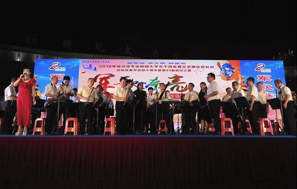 武汉爱乐交响管乐团是江汉区文化馆馆办团队,常年在街道社区演出,普及交响乐,深受辖区居民的欢迎。