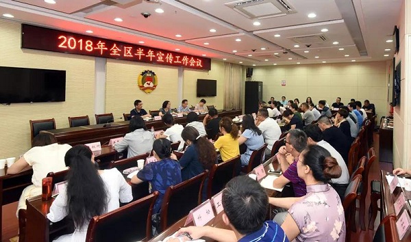 8月2日,区委宣传部组织召开2018年全区半年宣传工作会议,总结分析上半年工作,布置专项宣传任务,谋划部署下半年工作。区委常委、宣传部部长、统战部部长胡娟出席会议并讲话。