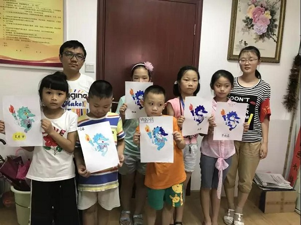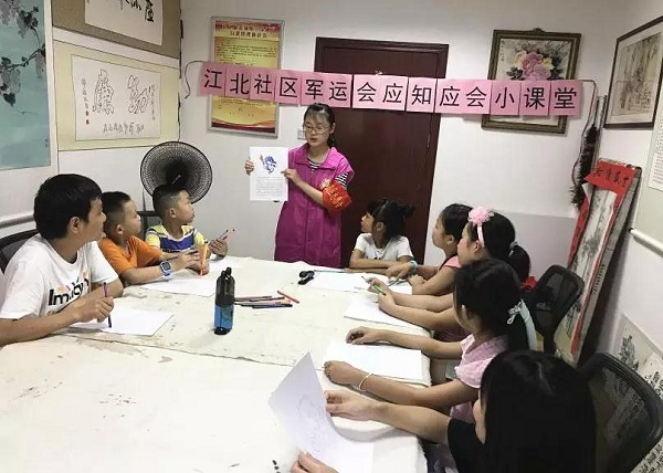 大学生志愿者向孩子们普及了军运会应知应会小知识,提高广大青少年对军运会的知晓率和支持率,并倡议大家积极行动起来,做热情好客、文明有礼、奉献友爱的小小东道主。