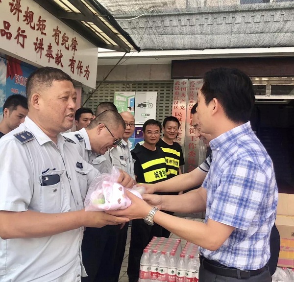 7月31日,副区长彭勇军一行到民权街调研指导工作,看望慰问了坚守一线的城管队员和环卫工人。