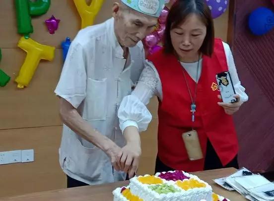 88岁的老寿星切蛋糕